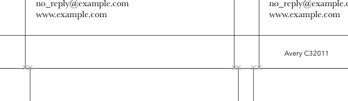 The only guides included on the template are the short grey 'cutting guides' at the edges of the page (the ones on the right edge look shorter, as I had the window set too narrow to show the full page width).