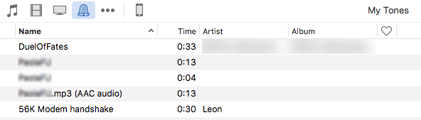 Please notice the blue-highlighted bell on top. That is the Music Library on your computer and its 'subfolders' for music, videos, tones, etc...