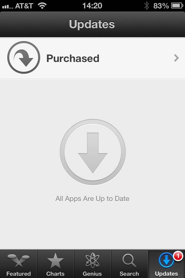 If I tap on another tab, like Charts or Featured, and then come back to Updates, it still says all apps are up to date. I have to force quit the App Store app (double tap Home button, tap and hold on App Store icon then tap the minus sign, then hit the Home button again) and then open it again in order to see this: