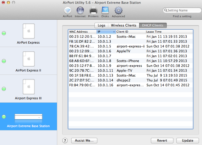 How to find Airport Extreme DHCP Assigned IP Addresses