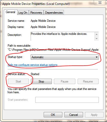 6) Find the "Apple Mobile Device" Service from the list, and double-click on it