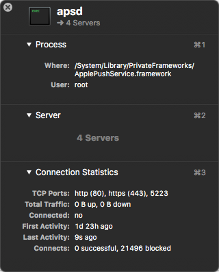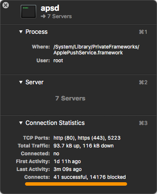Just a few days ago I began blocking ALL outgoing apsd connections.