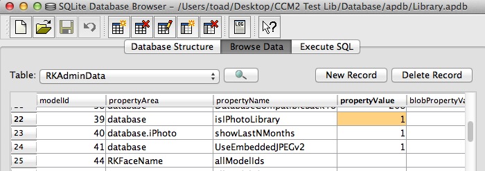 I also discovered the entry TouchedByAperture set to TRUE in one plist file contained in the database folder of my iPhoto library.