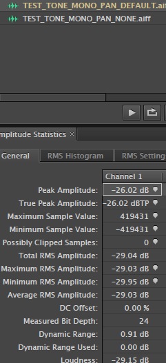 So I try a different approach: I set PAN MODE to Default and channel configuration to mono. I get a file that is 6.02 dB quieter than my original file.
