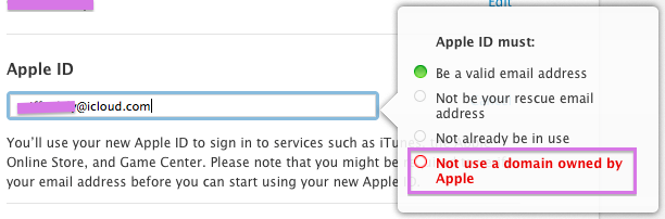 When I first set up my Apple ID, I used a gmail account. However, I have since created an @me.com (now @icloud.com) mail account. I have been able to attach it to my Apple account, but it says ↓ I cannot make my official Apple ID an email with a "domain owned by Apple"--i.e. @icloud.com. I'm trying to sever all ties to this old gmail I no longer use, and this is the only major thing left.