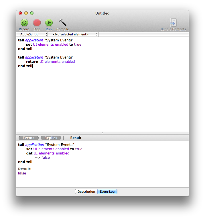 So I have a launch-daemon that needs to utilize GUI scripting. I need to be able to enable it through AppleScript (or really any scriptable, automated means). I am trying to do this: