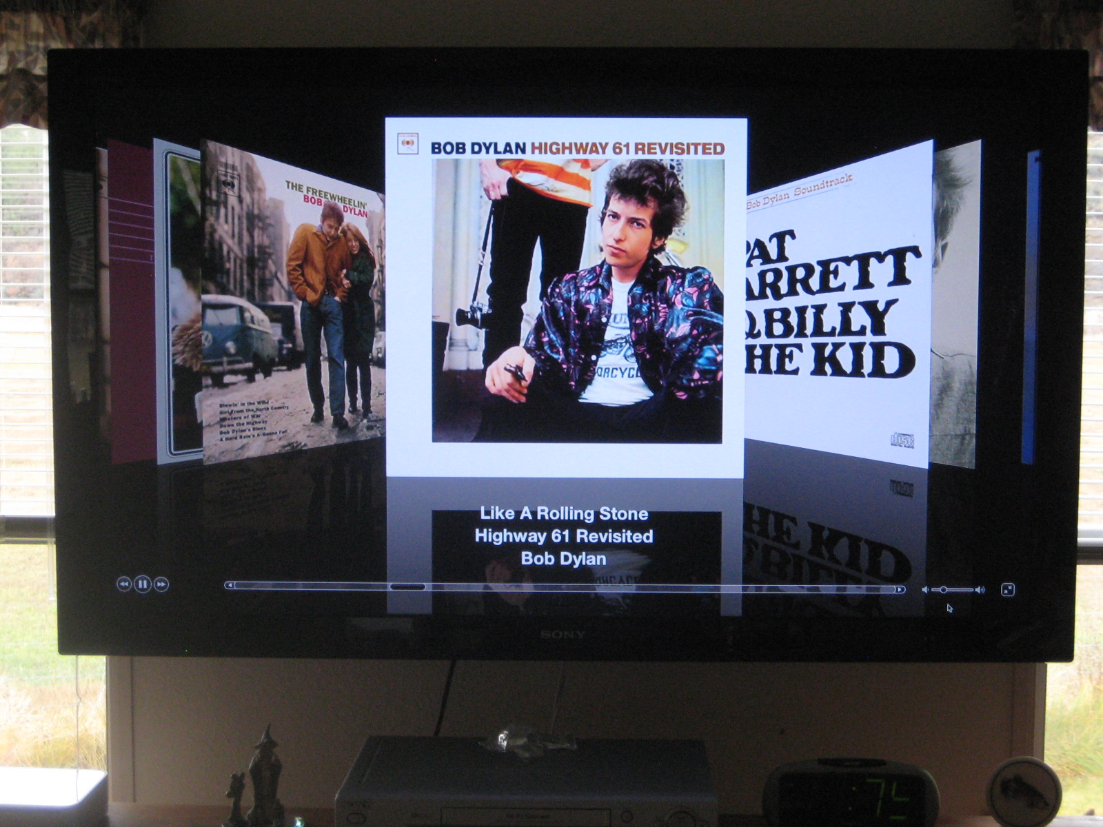 I am attaching a photo below to show all the people at Apple what an entertainment center looks like when using Full Screen Cover Flow on a 55" Sony HD TV.