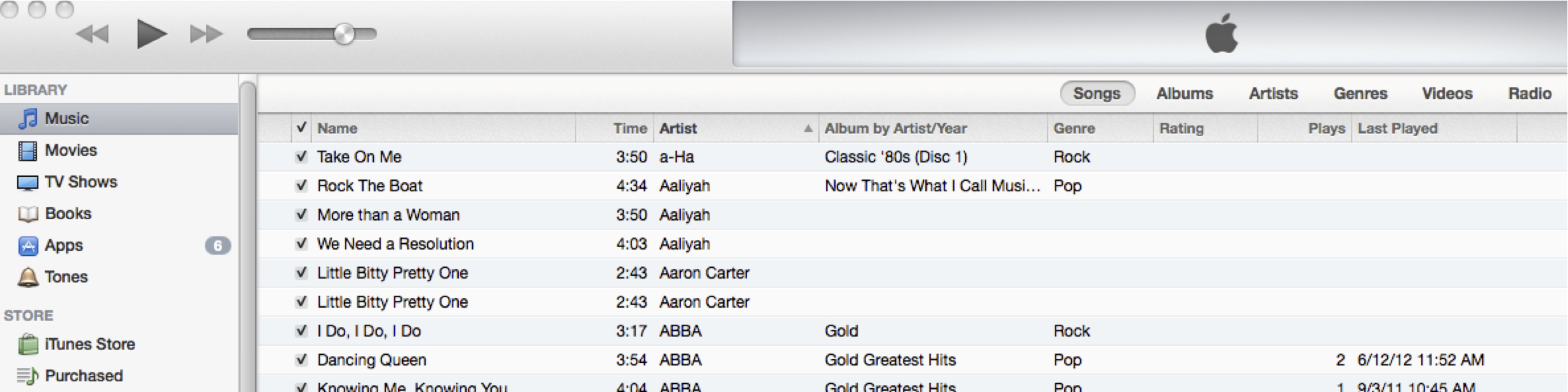 After 8 iPods, 2 Macbooks, 1 iPad, years of meticulous organization of play counts, playlists (smart and otherwise), and countless conversations trying to be persuaded to move elsewhere, I’m afraid my worst fear may be realized: with iTunes removing the grid option from it’s basic format, it may finally be time to say goodbye to my closest muical compantion, even after all these years.