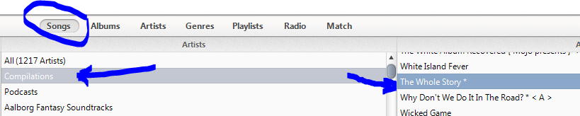 Until now, iTunes regarded a Compilation Album as one with multiple artists, but the music industry and consequently a lot of the entries on Gracenote regarded an album by a single artist - but with songs from various stages of their career - as a compilation. Looking at the Artist list in iTunes, there was no entry for "Various Artists", and albums were instead listed under "Compilations". This has meant for example, that not only was "Now XX listed under Compilations, but so too was "The Whole Story" by Kate Bush (a compilation of her earlier work). If that was the only album of hers in my Library, her name would not be listed in the Artists section. I also found it necessary to fill in the Album Artist field on Compilation albums with "Various Artist".