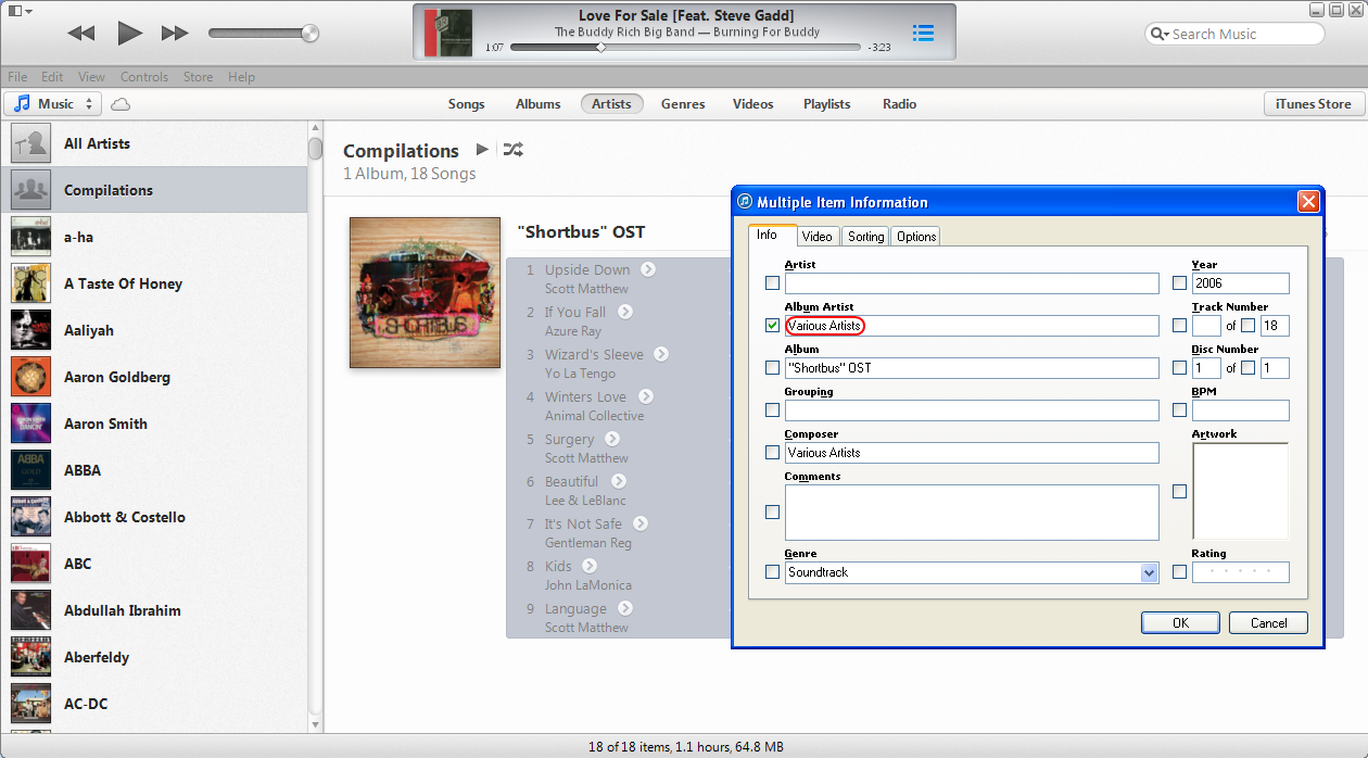 Compilation albums in iTunes 11