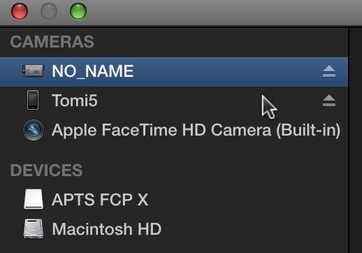 When I mount ordinary media (an USB flash drive, or external USB disk, containing some Quicktime files in MOV container, or some audio in AIFF, etc), in the Media Import window, this only shows up under "Devices" (and not under "Cameras", for obvious reasons). I cannot eject this from within FCP, but if no media gets imported from this drive (in other words, if FCP never touched it), I can eject the media from the desktop (Finder). However, if I import some media from that USB drive (an AIFF file, or a MOV file, for example), I can no longer eject it from the Finder, even though FCP completed the import, copied the media into the relevant Event, finished any residual rendering and is doing nothing with any files, internal or otherwise. In that situation, I have to Force-Eject the drive in order to remove it.