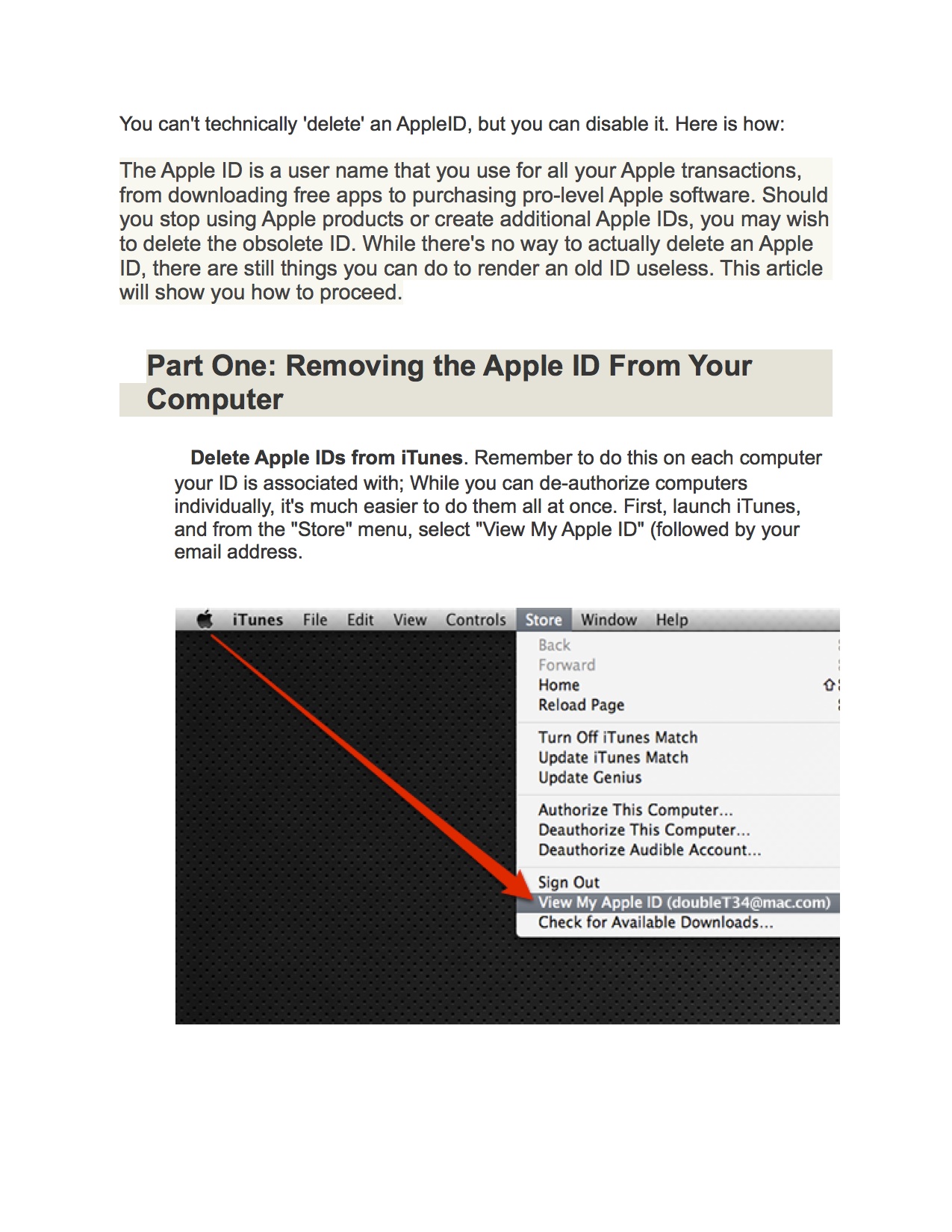 You will notice that although it is titled "Delete An Apple ID" it does not actually answer the Question.