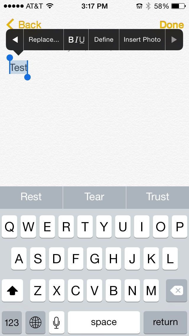 • Write a definable word (I wrote both "test" and "iPhone" to be able to prompt both broken New Oxford American and Apple dictionaries)