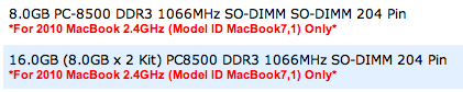 I think this will warrant a call to the OWC technical department to satisfy my curiosity. I have no compulsion to increase the RAM on that unit (I have 16 GB in the 2011 MBP) but it looks that an amendment will have to be made in Mactracker.