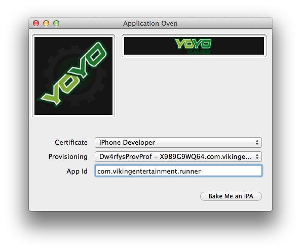 Hey i dont know if anyone can help me with this but im using gamemaker studio and they told me to use this application oven to create an ipa that i can put on my ipad so i can test the apps im making, but i dont know what im doing wrong when i press bake me an ipa it wont save even if i name it dwarfy or dwarfy.ipa, i dont know if my appid is wrong or what is wrong, hope someone can help me i will add a picture of the program.