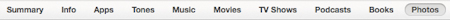 The Photos tab doesn't appear there. If you are on iTunes 11 on your computer then you may want to re-enable the left-hand sidebar via View > Show Sidebar (option-command-S on a Mac, control-S on a PC), which might make it easier to navigate and my instructions may make more sense.
