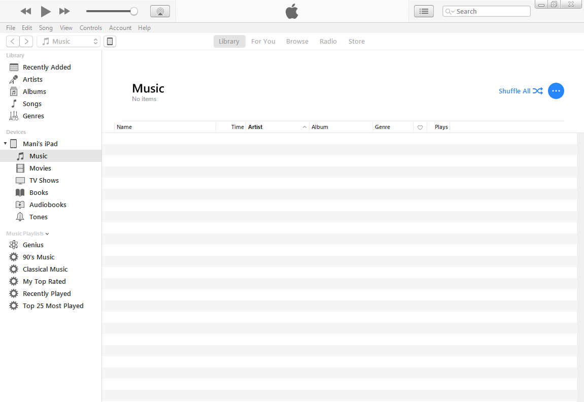 If you haven't enabled the sidebar, then from your library click 'iPad' at the top right of the screen and you should get a series of buttons along the top of the screen, including one for Photos