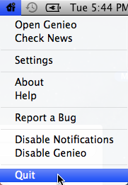 I have the same problem (Genieo says it's open, but can't move it to trash and I can't see it in Force Quit). How did you manage to close it?