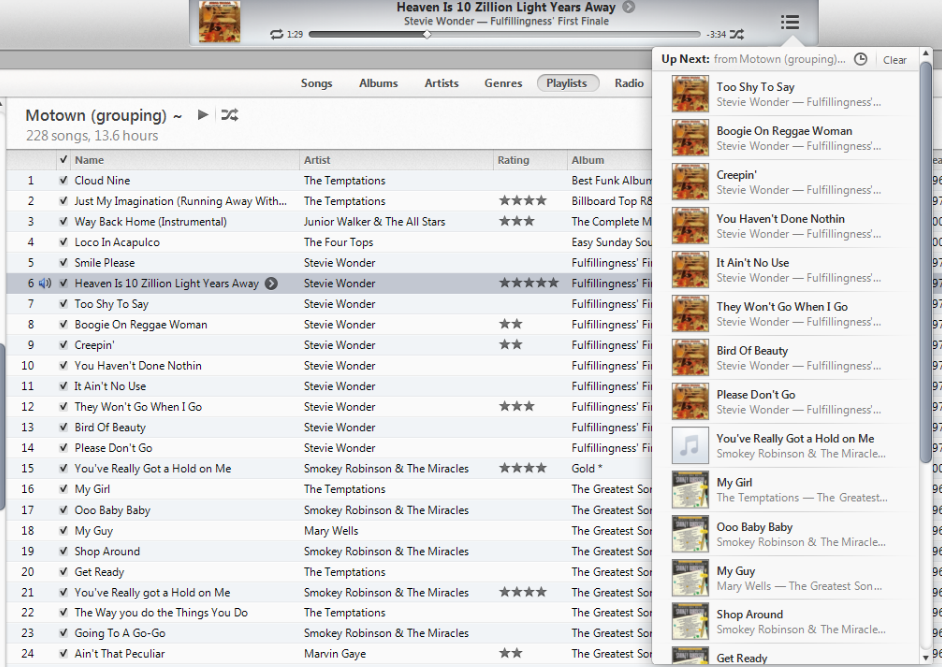In the screenshot above (shuffle is off), the Up Next list is the same as the song order list underneath "Heaven is 10 zillion...".