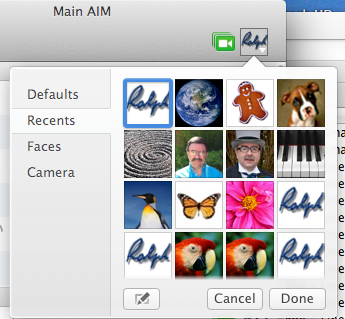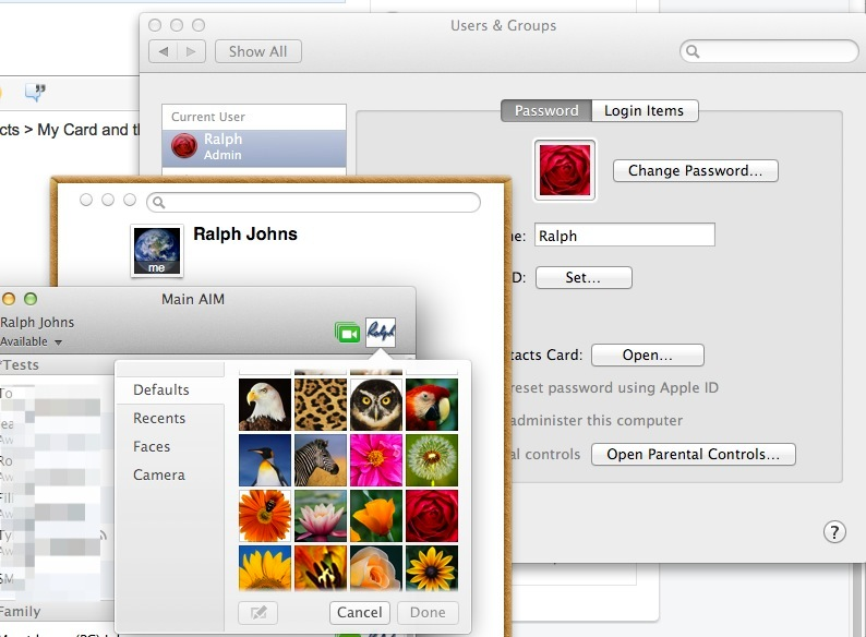 The "Recents" as in this pic are pulled from Messages, The Contacts > My Card and the User Account pic (System Preferences > Users and Groups).