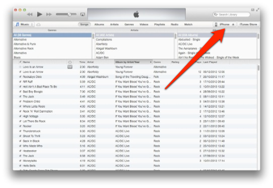 I am looking at iTunes on the Mac that shows my iPhone (or my iPad when that is plugged in) at the button that appears top right like in the pic.