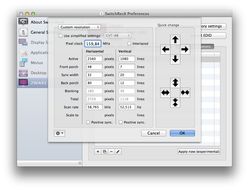 Thats for all this info . I half read it an bought the screen and a Mini Display Port to Display port , all work right away but the Text look very Jagged . so I set up HDMI and used the SwitchRex 3.8.4 this make things look much better.. is this why everyone esle had to edit with SwitchRex cos it look bad ..?