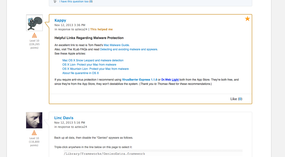January 18, 2013 I was hit with a Genio virus application that somehow got onto my Mac OS X 10.6.8 (MBP)