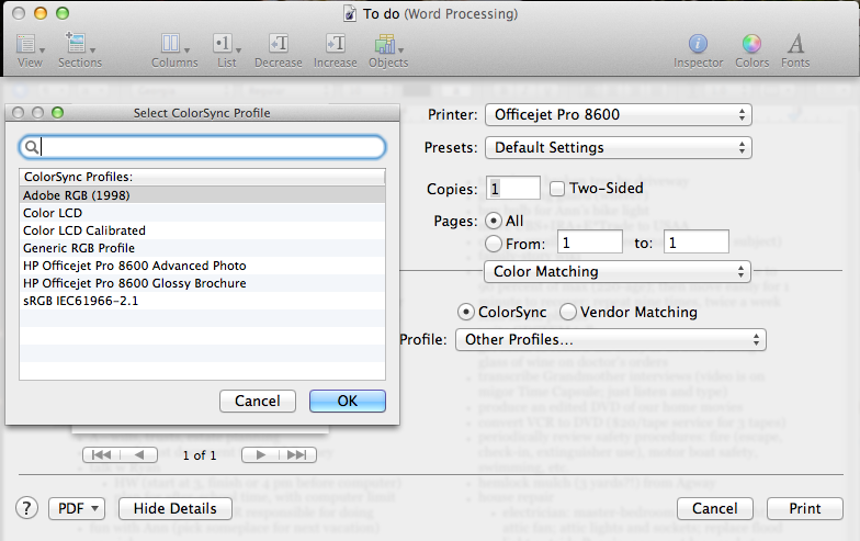 I'm running OS X 10.8.2 Mountain Lion. In System Preferences for Print & Scan, I chose the driver called "HP Officejet Pro 8600" (rather than the default of "AirPrint"). In the print dialog box, under "Color Matching", I select "ColorSync" rather than "Vendor Matching" and get a list of seven ColorSync profiles as shown below, none of which are grayscale or black and white.