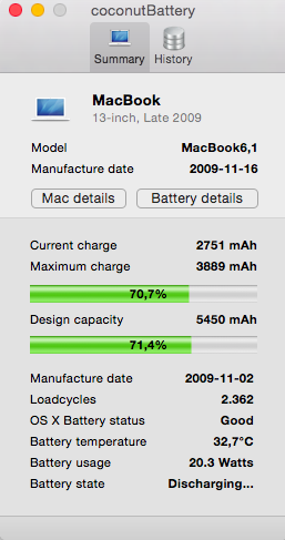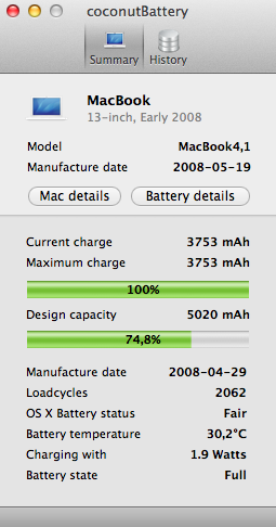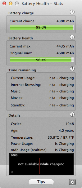 But running off the power it's fine, what's the point in wasting €140 on a new battery! The charger cost me €90! I think Apple must make lots of money on replacements like that!