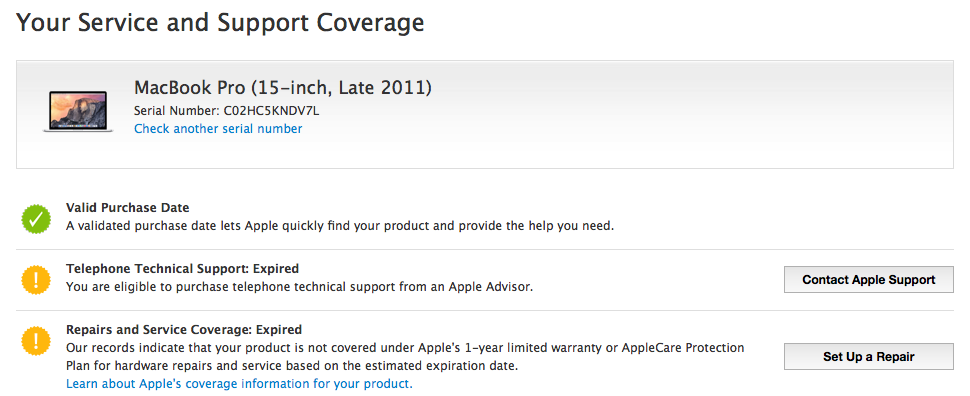 "The program covers affected MacBook Pro models until February 27, 2016 or three years from its original date of sale, whichever provides longer coverage for you."