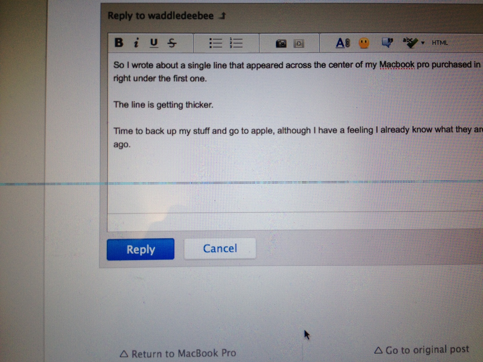 However, as of two days ago, the problem has become substantially more severe. The computer was working fine, when all of a suddent the screen when completely blue. I had to force restart the computer. Since then, the screen has gone awry on numerous occassions - each time necessitating a hard reset.