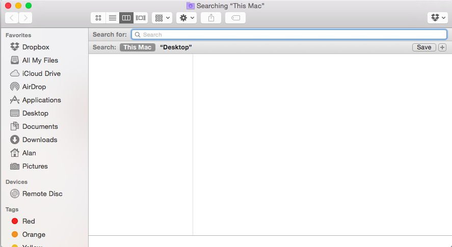 2. Open the options menu by "right clicking" on the toolbar (Next to the "Searching This Mac" legend)