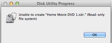 I then opened disc utility, selected Superdrive. There doesn't seem to be an option to change the file into an iso (I'm afraid I don't understand the term). The image format offers me read-only, compressed, read/write or DVD/CD Master. I've tried all 4 and get an error message -61 which seems to mean it doesn't like the dmg fomat?