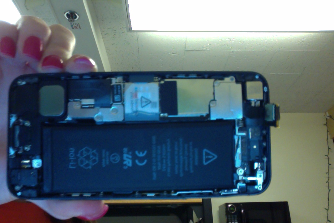 My iPhone 5 was thrown against a wall and busted open. The front half was barely connected to the back half, the screen was black, but lights were still on and it still made noise. I stupidly pulled it apart completely so there is no reactivity at all. Based on pictures I've seen of the inside hardware, it doesn't look in too bad of shape except for one thing. At the very top right there's a metal square, and directly next to it I have like three black "tag-like" things sticking out all on top of each other stemming from the same place. The very bottom was says "76 mk" on it and a bunch of different numbers, the middle one has numbers on one side, a brownish end, and a metal chip thing on the other side, and then there's the outer one with nothing on it that looks like it potentially might have been broken off. I don't know if this is making any sense at all, but any techy people out there, is there anything I can do to fix it up enough so I can plug it into my computer and get my stuff (photos, contacts, etc.) off of it by doing a backup.