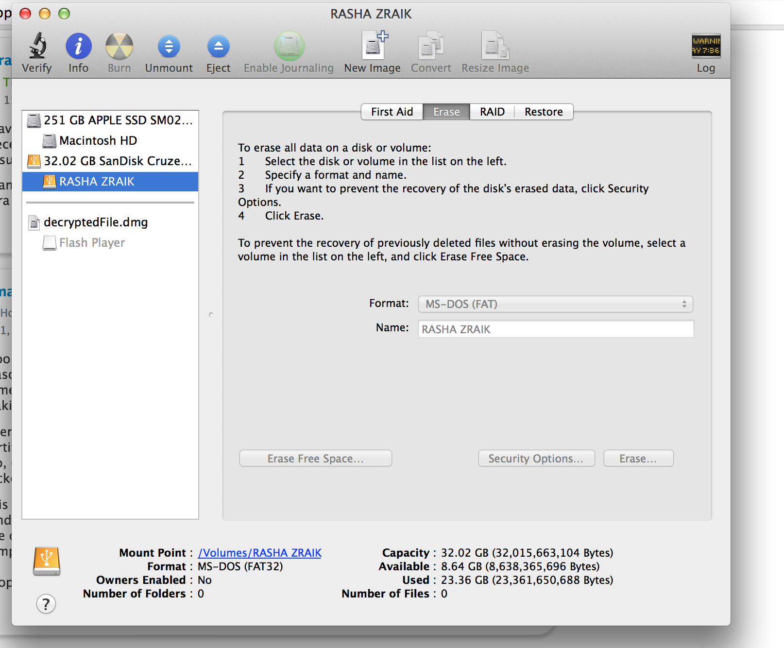 6. Click on the Erase button. The format process can take up to several hours depending upon the drive size.