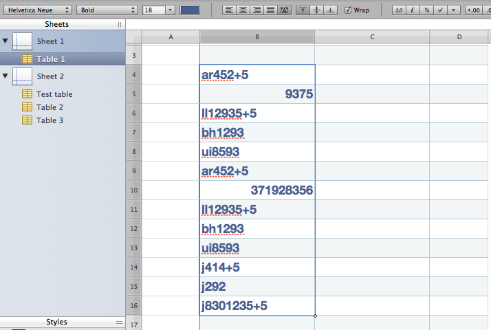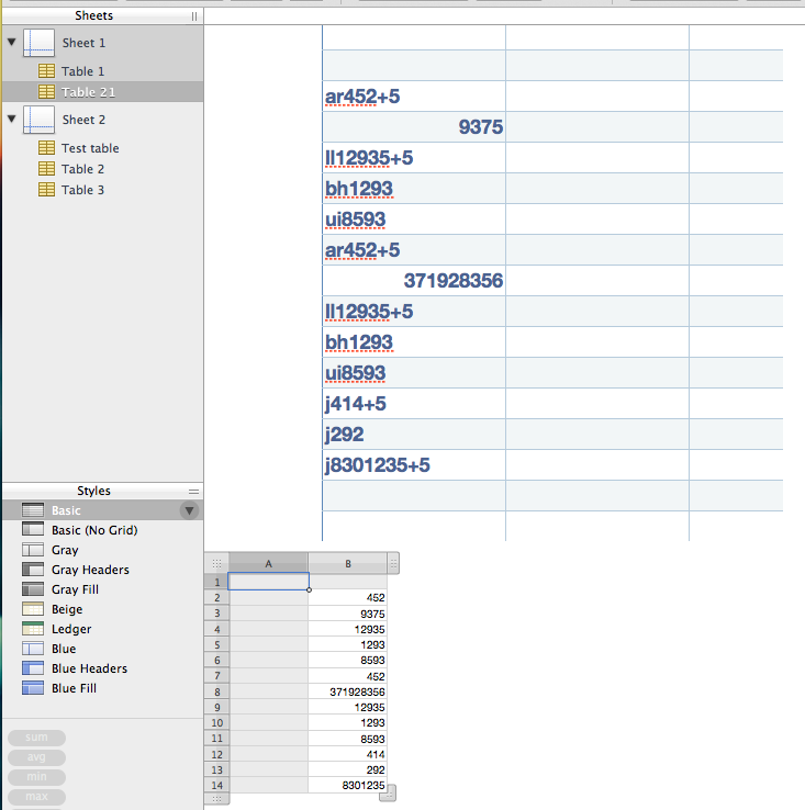 The script now detects the selection on any table of any sheet on the front document (in case the original data isn't in table 1 of sheet 1). It creates a new table on the same sheet as the original data, with the stripped values in a single column. All alpha characters are stripped from the original values, as are the character "+" and anything that comes after it.
