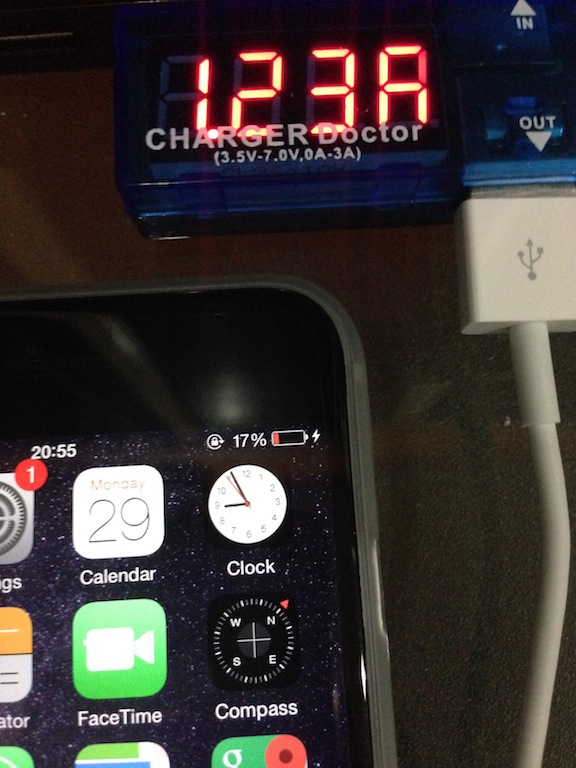 Then I took the spare lightning cable and check, and I was amazed that instead of 1A or 2A, the power draw from my spare cable was 1.7A 😢