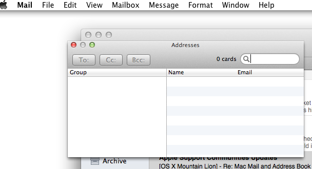 For some reason when I begin to type in the name of someone in Mac Mail who I know is in my address book, the automatic search and suggestion does not happen. I am physically having to go into the address book and copy and past the email address. I have looked through the iCloud settings in both the address book and mac mail and it seems to be okay. Any suggestions please.