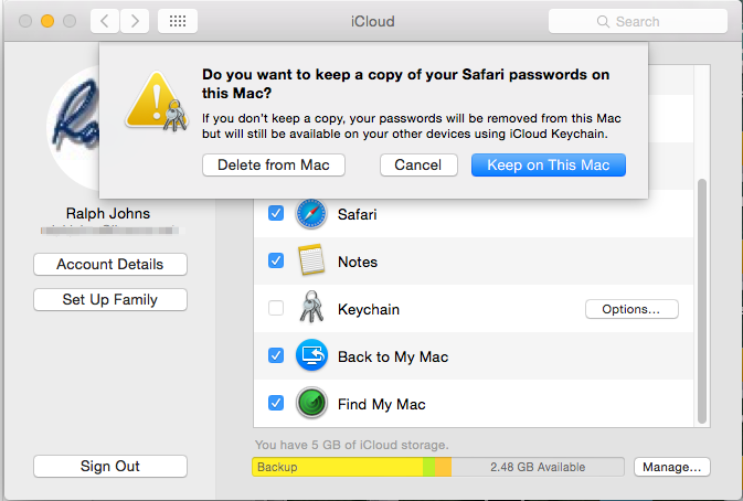 After restarting the macbook and opening icloud, this is what I got when I tried to sign out.