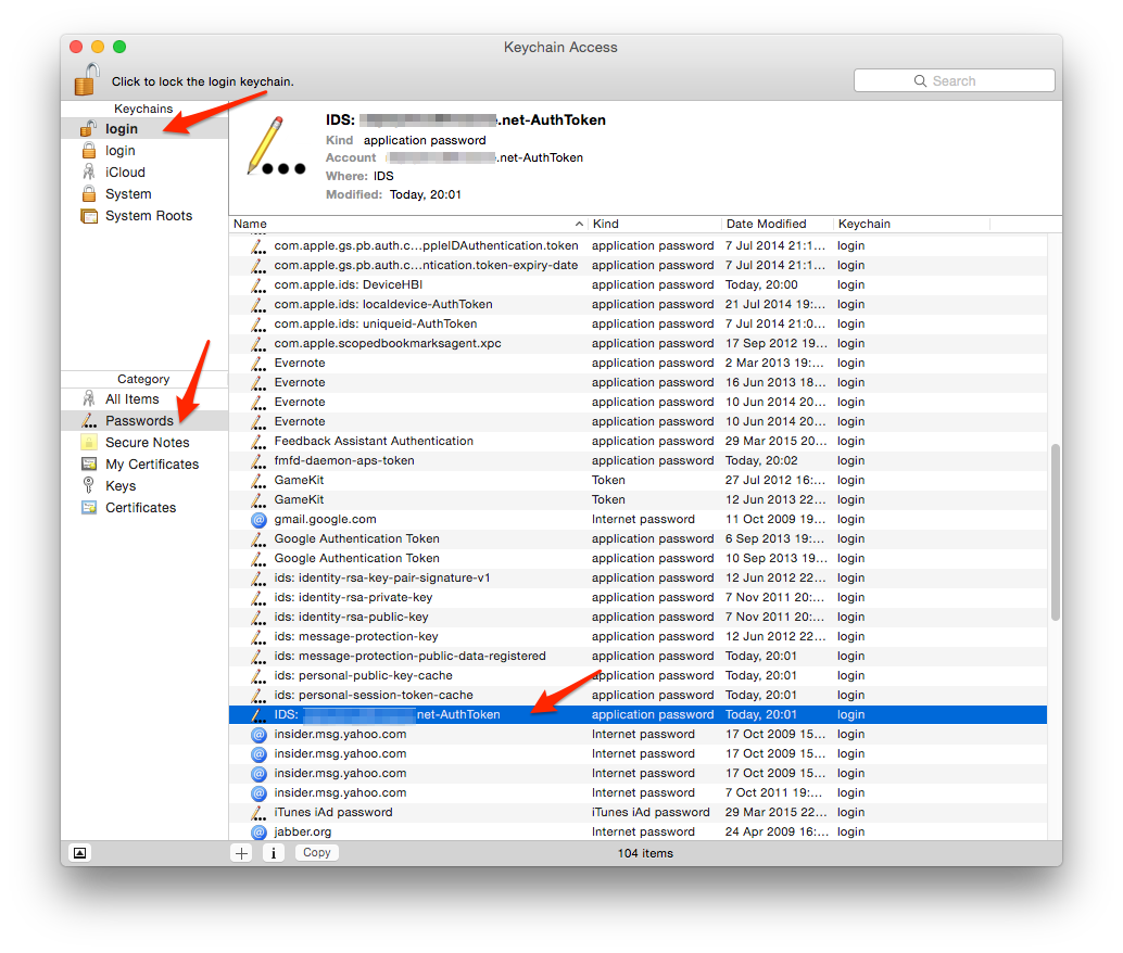 On the right your needs the IDS: AppleLoginEmailID-Auth Token line.