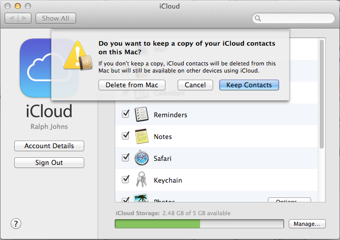 If I untick each service first I get the same warning at the Contacts one and similar ones about the Calendar and that other services will be available to other devices still.