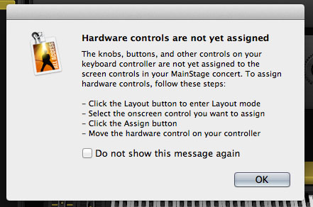 I keep getting this little box. so that must mean that MainStage recognizes that something is plugged in, so thats good.