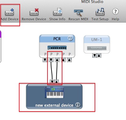 Fifth: You (just) might need to manually make an external 'Device' to represent your MIDI Keyboard, and cable it up to the MIDI Interface device: