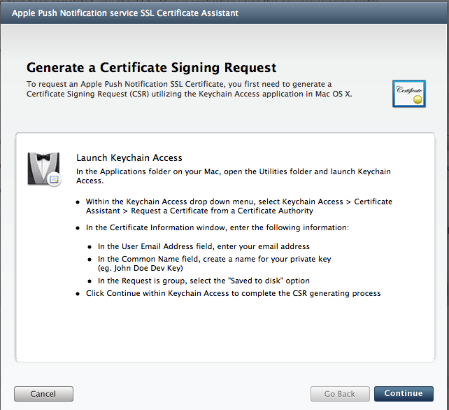 no respond when I click continue in apple push notification service ssl certificate assistant