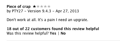 Also noticed that iMovie was being dragged through the review mud too averaging slightly better than iPhoto. Do you see a pattern? Why all the crashes etc.