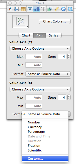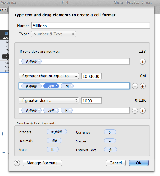 I am having a hard time creating a custom format for my spreadsheet graph that changes my Y axis labels from 1,500,000 to 1.5M - I found a previous discussion on the subject but it doesn't actually explain how to format. I appreciate your help.