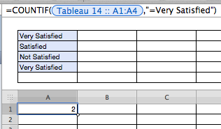 =COUNTIF(Tableau 14 :: L1:L400,"=Very Satisfied")