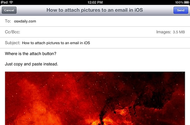 I do I send a photo as a jpeg attachement and not have it show up embedded in the body of the email? I know this can be done because my friend has an iphone and sends photos as attachements. Thank you in advance!