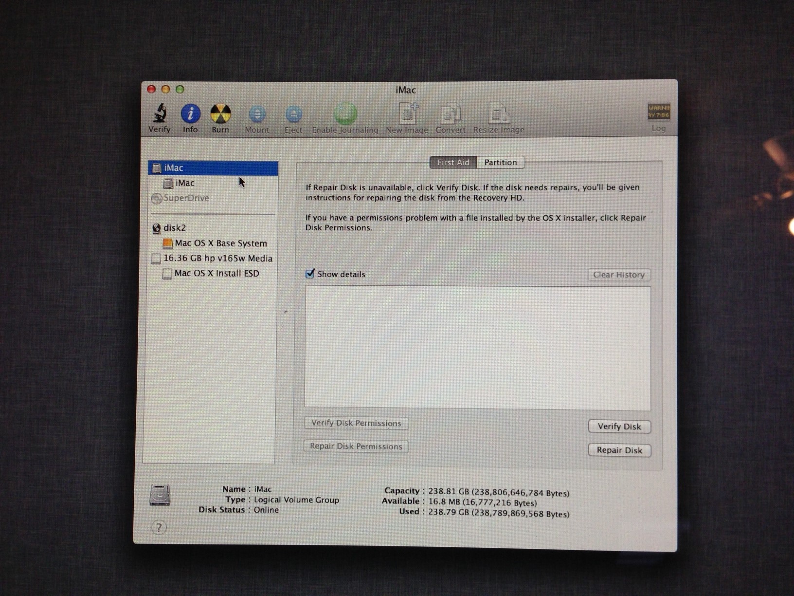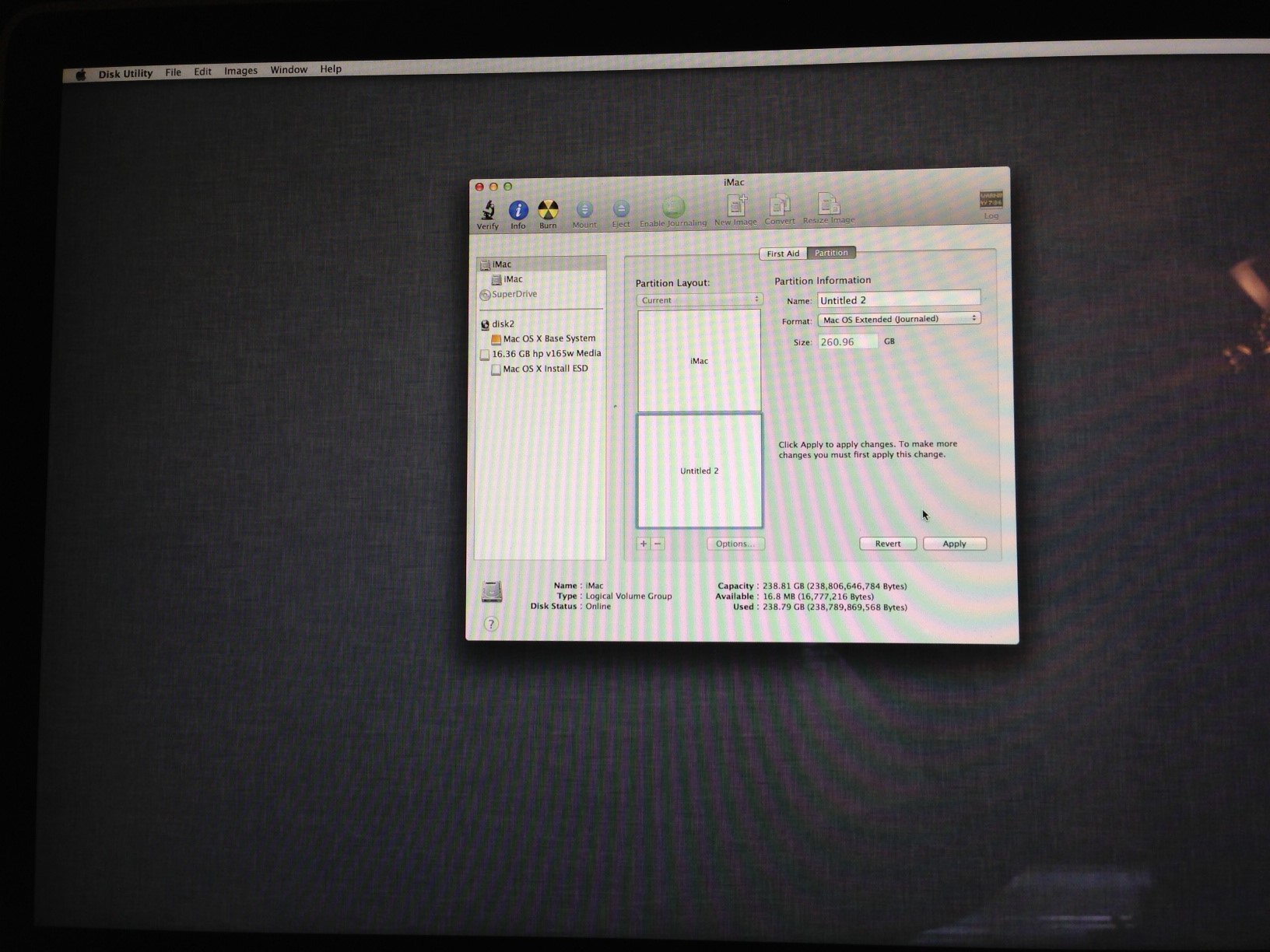 I am trying to erase my hard drive and do a clean install. In the process I accidentally made a partition of half my drive as free space. I tried to convert it to journaled but when I click apply nothing happens. I made a Mountain Lion Install USB. I have booted from it and entered Disk Utility. I figured I'd go ahead and erase it and it would give me the free space back. However, when I click on my drive I only have the First Aid and Partition tab. I am posting pictures as to show you exactly what I'm looking at.