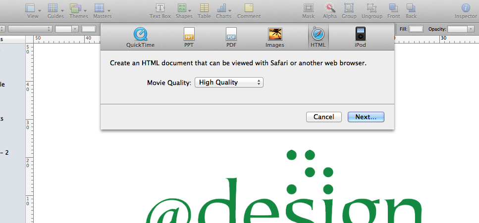I have a client who wants to place a powerpoint slideshow on their homepage. I am using Keynote '09 to do this work.
